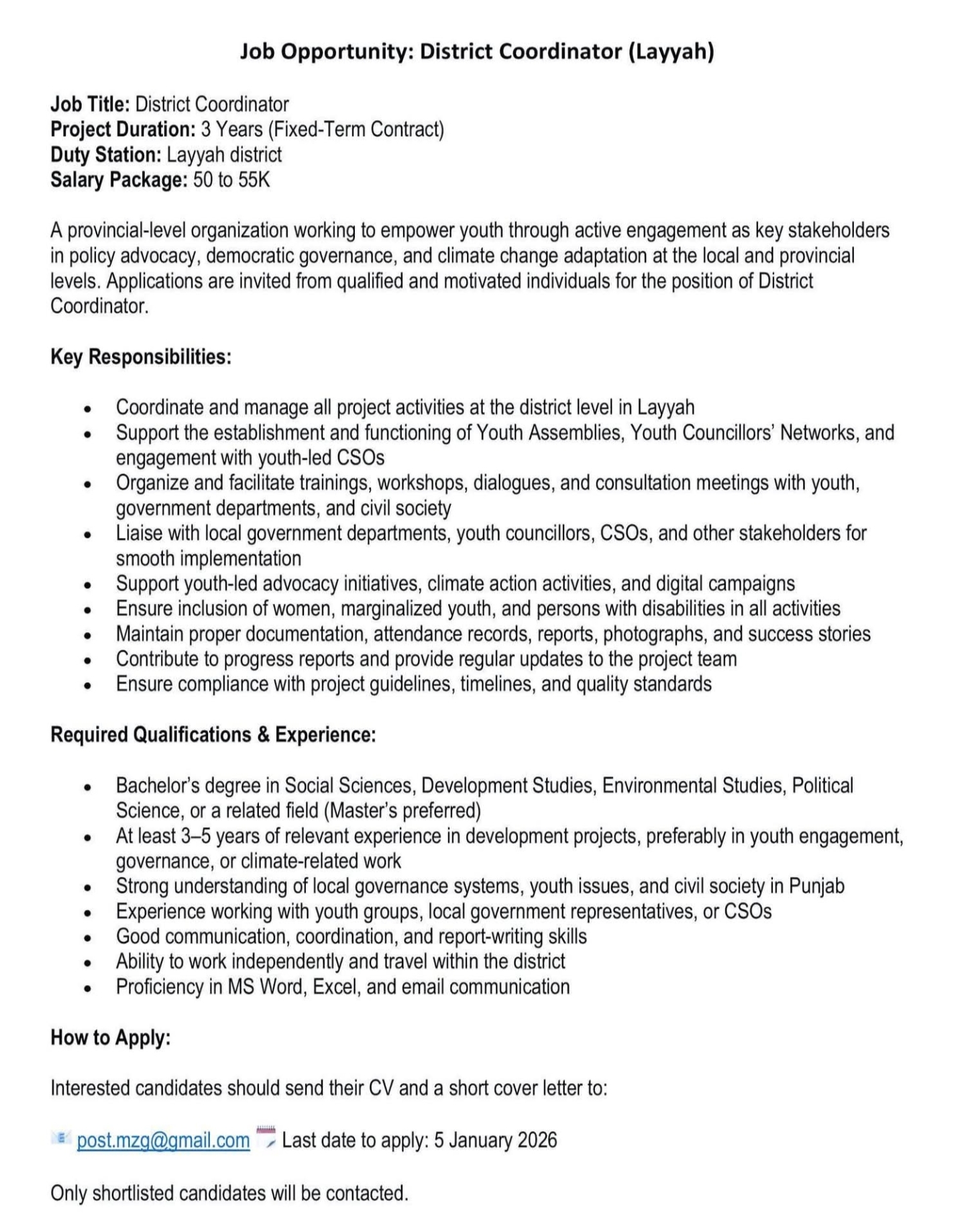 District Coordinator- Layyah