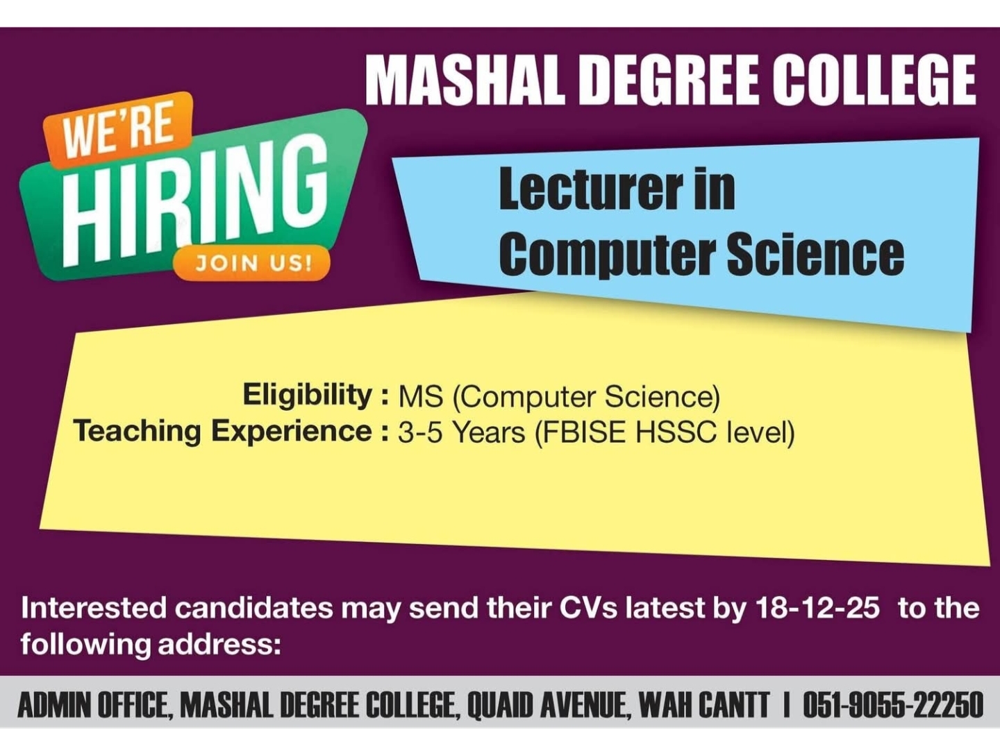 Mashal Degree CollegeOpportunity Information