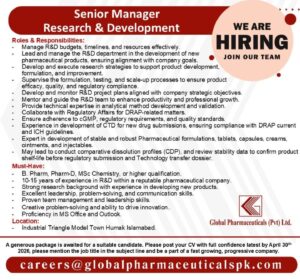 Senior Manager- Research & Development