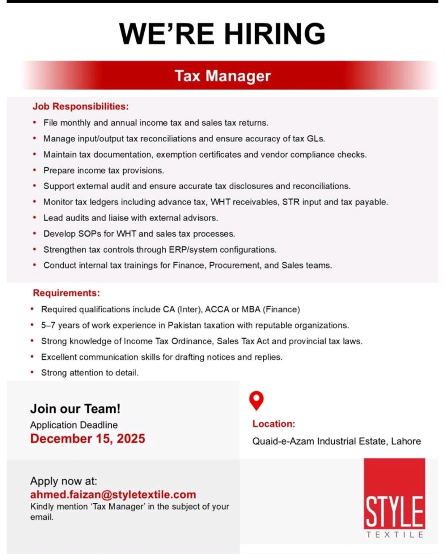 Tax Manager (Style Textile)